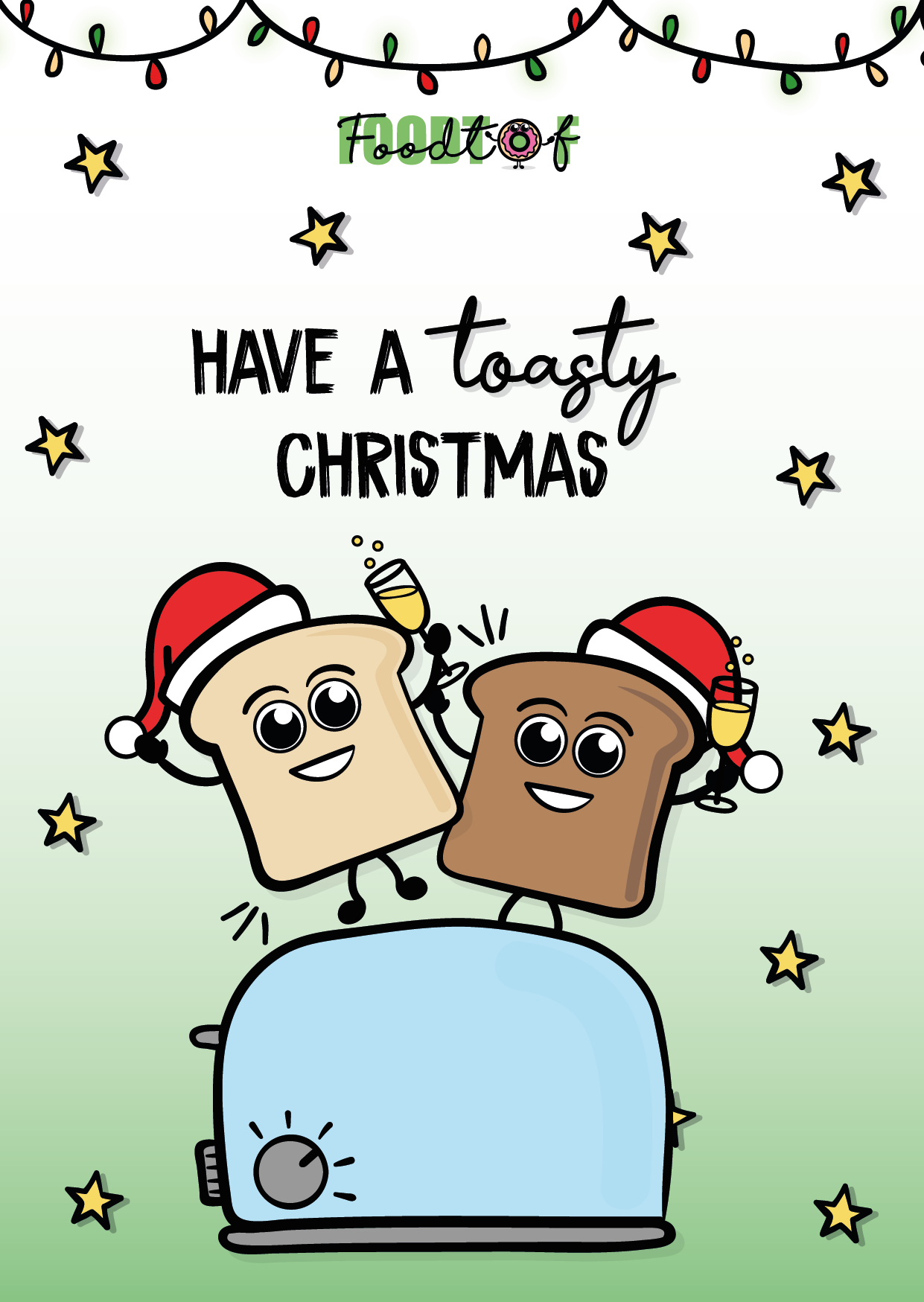 Op deze sprankelende kerstkaart schitteren. twee heerlijke toasts  en de boodschap is even feestelijk: ‘Have a toasty christmas’. Toast op de gezellige en fijne kerstdagen. Personaliseer de achterkant met een persoonlijke boodschap en deel deze knapperige kerstgroet met familie en vrienden. Toast op een geweldige Kerst! 🎄